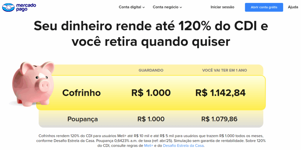 Para ativar o cofrinho 120% do CDI, o cliente precisará assinar o Meli+ ou depositar 1.000 reais todo mês na sua conta Mercado Pago. De acordo com o Mercado Pago, não é necessário levar os 1.000 reais de uma vez só para a conta, ou seja, você poderá efetuar os depósitos e as transferências no decorrer do mês. Entretanto, no caso dos clientes PJ (pessoas jurídicas), o rendimento sempre será de 115% do CDI. Porém, seja pessoa física (PF) ou jurídica (PJ), os cofrinhos possuem liquidez diária. Além disso, a tributação sobre os rendimentos segue a tabela regressiva de IR e o valor creditado já é líquido de imposto.